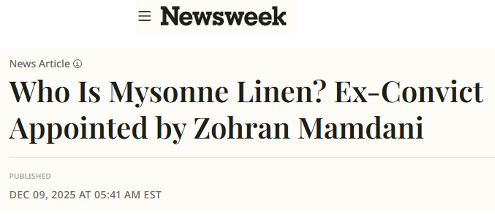 Mr. Linen is also an outspoken advocate for criminal justice reform. All of which the Mayor-Elect believes qualifies him to help improve public safety in the crime-ridden city. As Zohran Mamdani has become accustomed to saying, “We are building something different.”