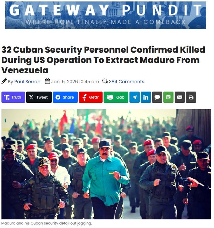 Number 3. The Gateway Pundit. 32 Cubans killed by US forces in Maduro snatch-and-grab.