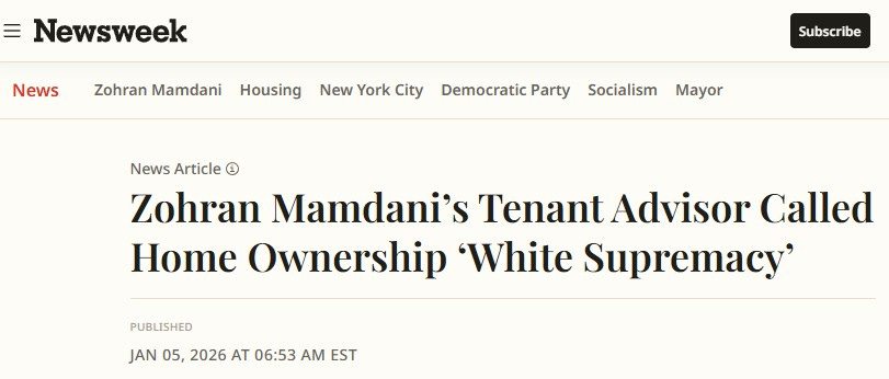 Number 4. Newsweek. Advisor to Mayor Mamdani notes that home ownership is white supremacy.