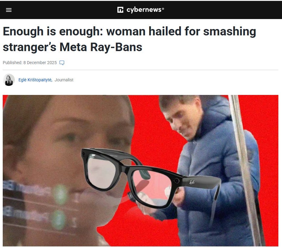 Number 1. Cybernews. Woman on subway smashes Meta glasses of stranger filming her.