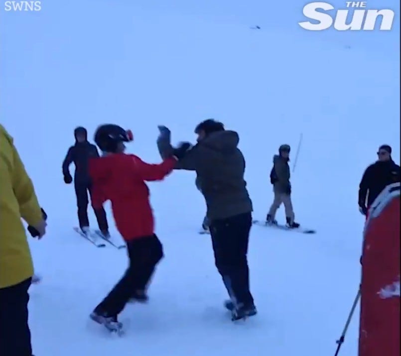 With parts of the USA teetering on the edge of civil war, Russia and Ukraine trading drone attacks in the middle of winter, Trump challenging NATO allies over the use of Greenland, Russia and China salivating over the same territory, Taiwan threatened with imminent invasion, England swamped by migrants, Europe mostly having already surrendered to invading hordes of military-age male “asylum seekers”, and many dictators in the western hemisphere alarmed by a muscular resurgence of the Monroe Doctrine, French skiers and snowboarders decided to have a fistfight in the snow.