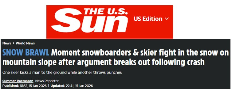 Number 1. The Sun, US Edition. Skiers and snowboarders mix it up in Alpine snow-rage incident.