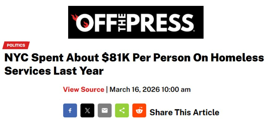 Number 3. Off the Press. New York City spends $81,000 each on homeless residents.