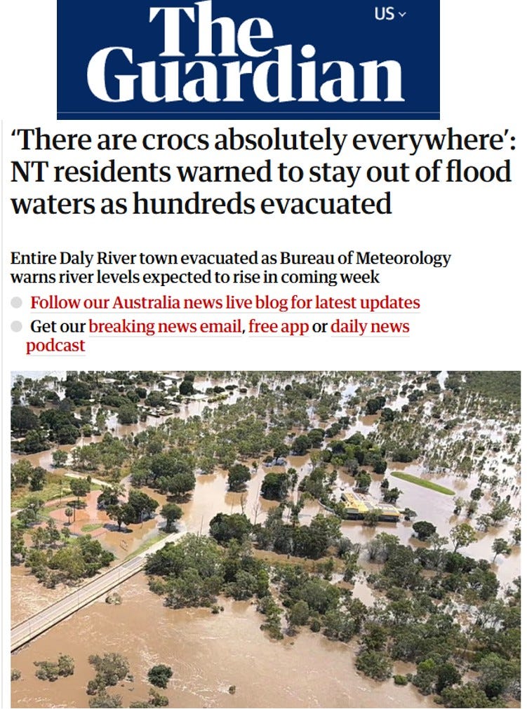 Number 1. The Guardian. Aussie residents urged not to swim in the water with crocodiles.