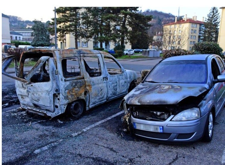 Arsons accomplished a new record this year, torching 1,173 cars across the nation. A year earlier, it was only 984. So the French are mastering the learning curve. Next year, maybe 2,000!