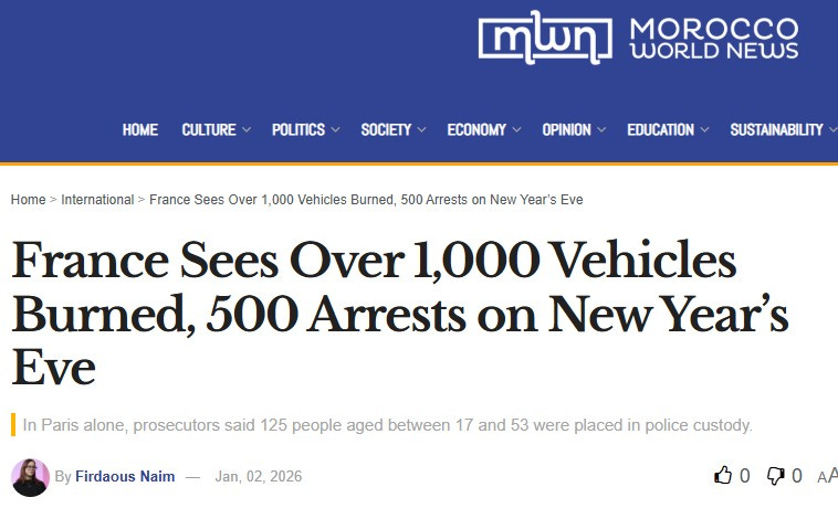 Number 2. Morocco World News. France celebrates New Year’s by burning 1,000 cars in the street.