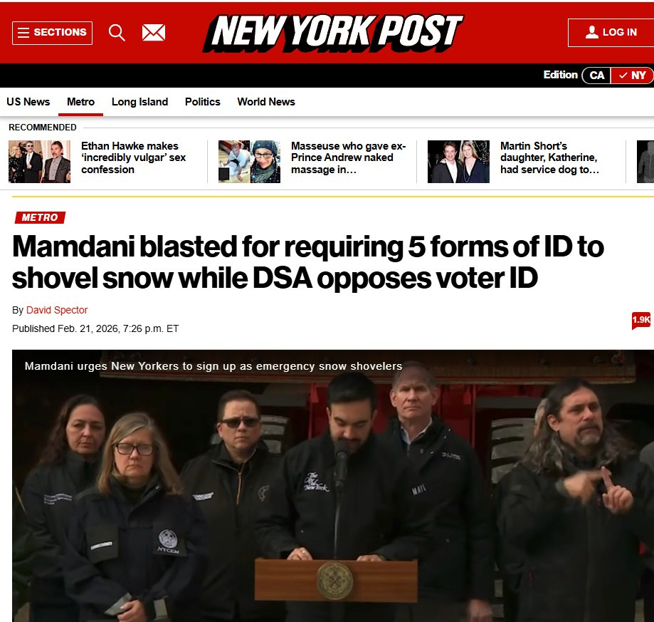 Earlier this month, new Mayor Mamdani, New York City, was criticized for failed snow removal efforts. That had to be hurtful, as it ran contrary to the warmth of collectivism that he had introduced to the City through his office.