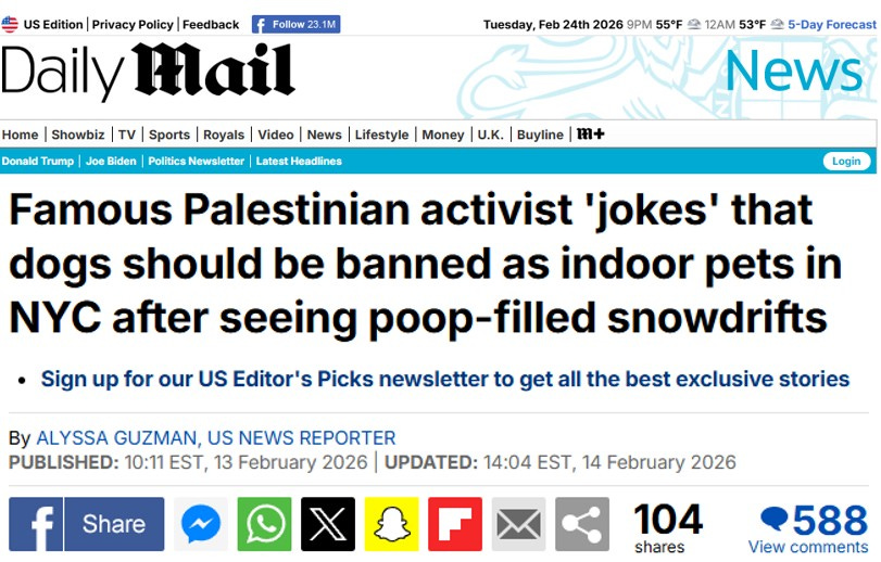 And outraged they were, to the extent that the sincere Palestinian protester (who holds her convictions stronger than life itself) immediately backed off. “It’s obviously a joke,” she posted later. “I don’t care if you have a dog.”